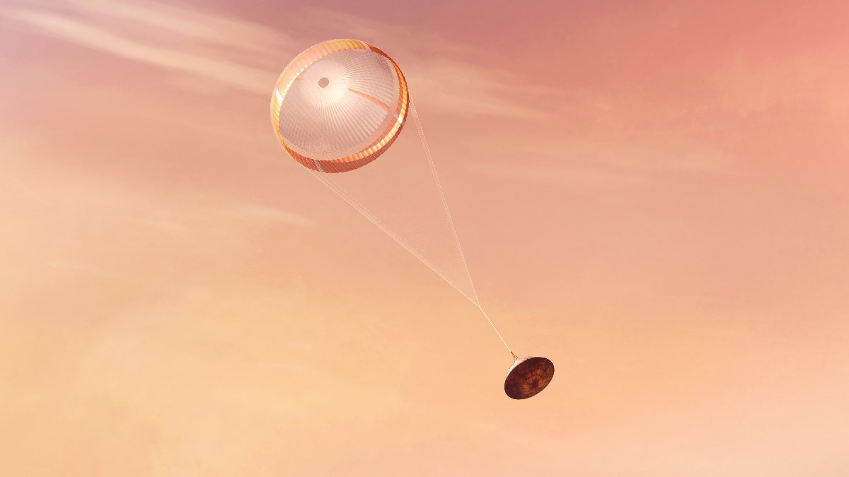 "The heat shield comes off about 30 seconds later and the rover will hang from the parachute, descending and waiting until it's about a mile above the surface."