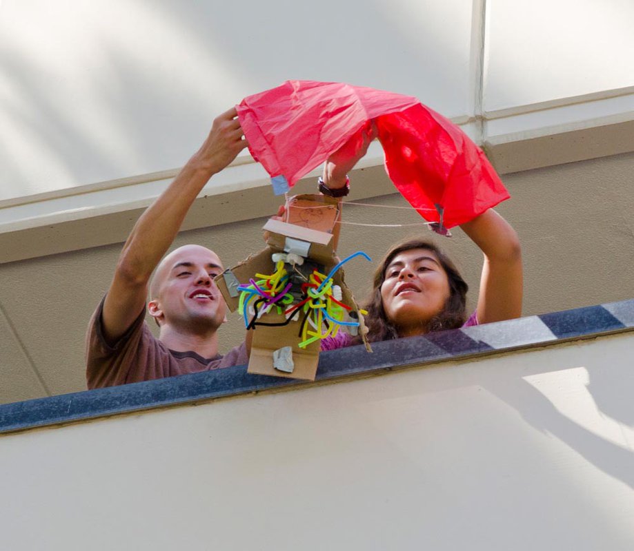 On a hot Pasadena summer afternoon, a group of middle school students looked up with excitement, waiting for their teammates and mentors to drop their engineering projects over a railing four floors up. In the minutes that followed, some of the projects crashed before their eyes, while others gently landed with the help of well-designed parachutes.