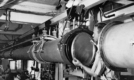 Coles designed several of GALCIT's experimental facilities, including the 17-inch-diameter shock tube—in essence, a giant cannon. Built in the early years of the Space Age to study the shock waves encountered by ballistic missiles and space capsules as they reentered Earth's atmosphere, the tube was designed to operate at very low pressures—an unconventional approach that researchers to put the shock waves under a magnifying glass, as it were. At normal atmospheric pressures, a shock wave is a few millionths of an inch thick. The shock waves broaden as the air gets thinner, until, at a pressure equivalent to an altitude of roughly 60 miles, they become about half an inch thick—enough to make precision measurements of their internal structure. The tube's unusually large diameter and its precision-machined, mirror-smooth interior were designed to minimize any distortions to the shock wave from the tube itself, which is made of stainless-steel pipe half an inch thick.