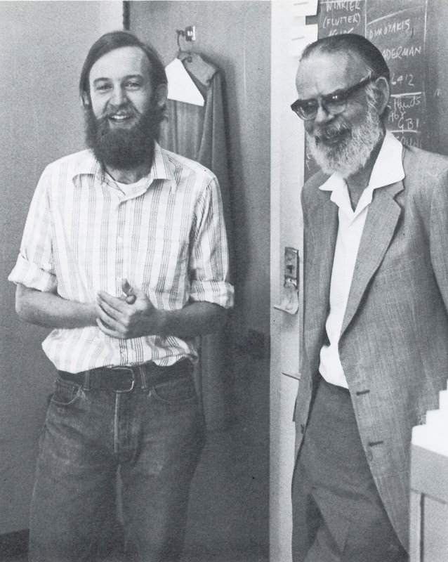 Ken Coles (BS '79, geology, MS '79, geology), poses for his senior yearbook photo with proud father Don in the latter's office.