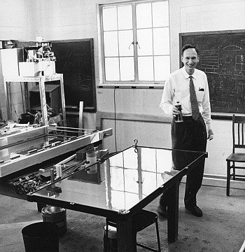 Bud Cowan with one of his cloud chambers, circa 1959.