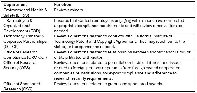 - Once the visitor has returned the required forms, HR Record is updated, and Division/Department is notified of approval including Caltech UID